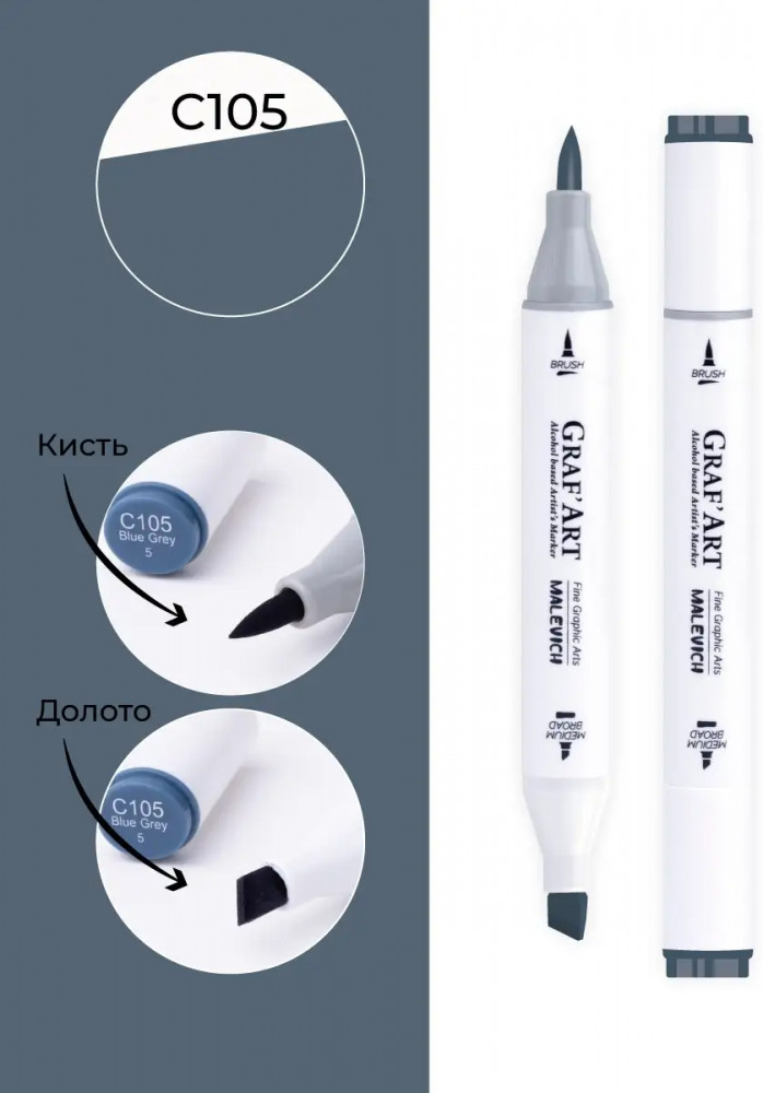 МалевичЪ Маркер спиртовой «GrafArt», C105 Серый голубой