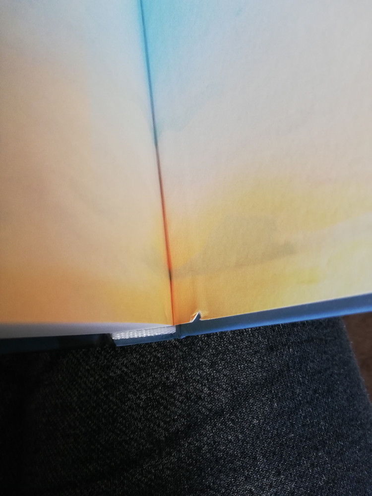 На обложке клей, который не отдирается. Виден клей при склеивание страниц с обложкой.