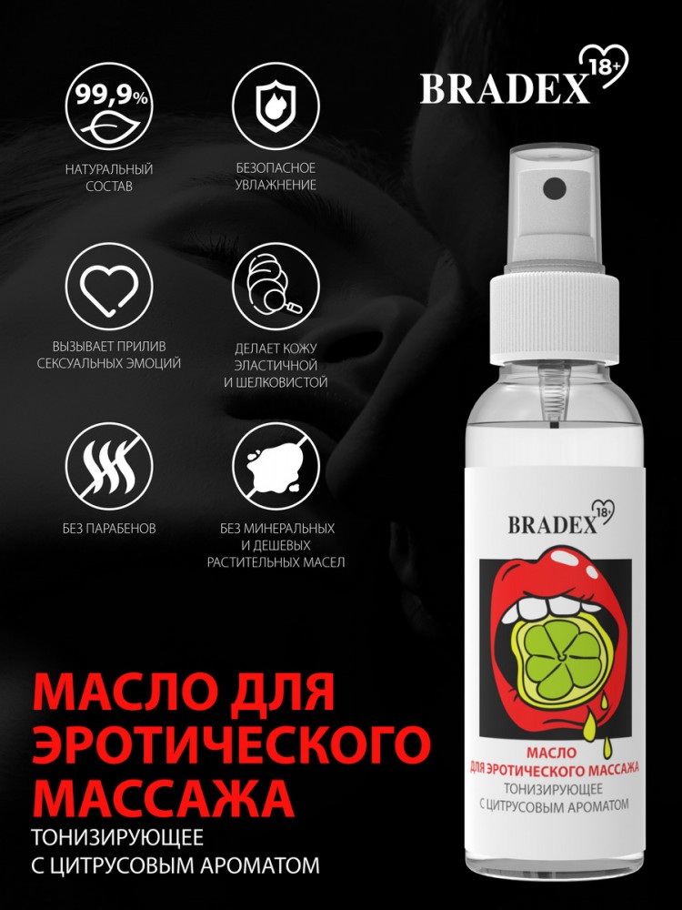 Bradex Масло для эротического массажа с цитрусовым ароматомВ данный момент этот товар отсутствует в продаже. Возможно, у нас найдется аналогичный или похожий товар здесь. Масло для эротического массажа тонизирующее с цитрусовым ароматом. |