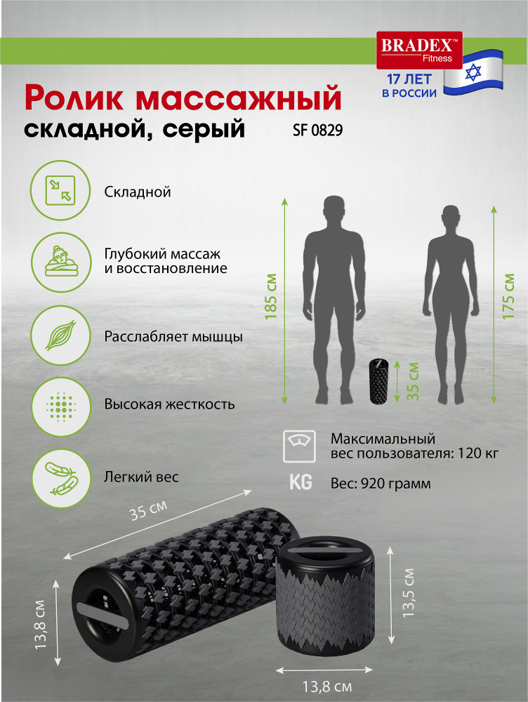 Сегодня многие ведут здоровый и подвижный образ жизни — едут в фитнес-клуб после работы, а на отдыхе также продолжают заниматься бегом, йогой, пилатесом или другими видами активности. Поэтому компактные или складные варианты спортивного инвентаря очень востребованы. Чтобы расслабиться после трудового дня, проведённого за компьютером, разогреть мышцы перед тренировкой или сделать комплекс восстанавливающих упражнений можно использовать массажный ролик (ролик для йоги или пилатеса). Для тех, кто хотел бы иметь такой ролл и дома, и в тренажерном зале, и в поездке компания Bradex выпустила складной вариант ролика — его минимальная длина составляет всего 13,5 см.