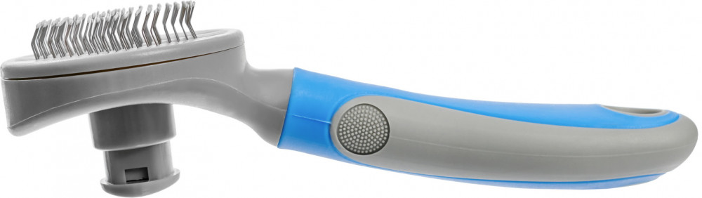 Bradex Щетка-пуходерка с кнопкой для очищенияВ данный момент этот товар отсутствует в продаже. Возможно, у нас найдется аналогичный или похожий товар здесь. Щетка-пуходерка — необходимая вещь для владельцев кошек, собак и других пушистых домашних животных. Это удобное приспособление для удаления выпавшей шерсти питомца благодаря частой металлической щетине полностью разъединяет волоски, вытягивает их на полную длину и эффективно удаляет с тела животного, не затрагивая здоровую шерсть и не травмируя кожу. Частые зубцы пуходерки оказывают приятный массажный эффект, стимулируют волосяные луковицы и улучшают кровообращение животного. Удобная прорезиненная ручка позволяет пуходёрке не выскальзывать из рук и комфортно размещаться в руке, делая домашний груминг приятной процедурой как для питомца, так и для его владельца. Больше никаких колтунов и стресса в процессе вычесывания, а также волос на одежде, в ворсе ковра и на полу — с щёткой-пуходёркой ни одна выпавшая волосинка не будет мешать ни питомцу, ни его хозяину. |