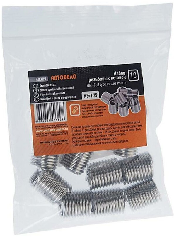 АвтоДело Набор резьбовых вставокВ данный момент этот товар отсутствует в продаже. Возможно, у нас найдется аналогичный или похожий товар здесь. Часто случается так что резьбовые соединения приходят в негодность и требуется их дорогостоящий ремонт. Для того чтобы избежать больших расходов, мы рекомендуем воспользоваться специальными вставками, которые позволяют восстановить необходимую геометрию резьбы. Набор резьбовых вставок Автодело применяется везде где требуется быстрое восстановление поврежденной резьбы без замены узлов и механизмов. Предназначен для восстановления внутренней резьбы. Набор состоит из десяти пружинных резьбовых вставок, изготовленных из нержавеющей стали. Резьбовые вставки в наборе одной длины — равной удвоенному значению внутреннего диаметра. Резьбовые вставки могут быть укорочены до необходимой высоты путём откусывания кусачками лишних витков. |