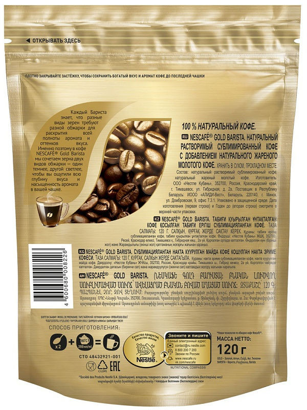 Nescafé Gold Barista не только порадует вас своим изысканным вкусом, но и поможет проснуться утром и подарит силы в течение дня.