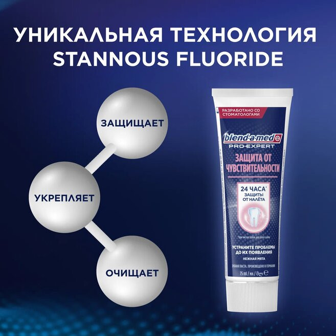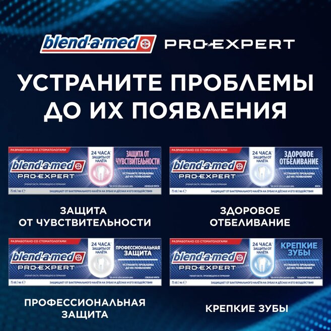 Blend-a-med Зубная паста «Защита от чувствительности»В данный момент этот товар отсутствует в продаже. Возможно, у нас найдется аналогичный или похожий товар здесь. Серия: Pro-Expert Защитите свои зубы от чувствительности с зубной пастой Blend-a-med Pro-Expert! Помимо этого паста также помогает защитить полость рта от бактериального налета на зубах и деснах, неприятного запаха и кариеса на 24 часа при условии чистки зубов два раза в день. Паста обеспечивает укрепление зубов и их глубокое очищение благодаря уникальной технологии Stannous Fluoride, выделяющей линейку Pro-Expert. |