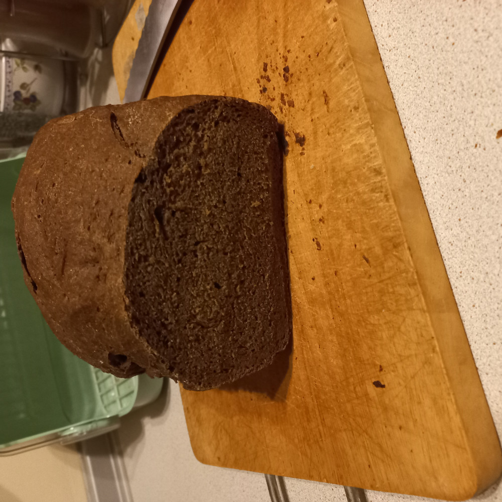 Очень вкусный ржаной хлеб. Пекла в хлебопечке Панасоник. Совет: пеките только по рецепту из инструкции к вашей хлебопечке. Не надо брать рецепты из Интернете типа "Ржаной хлеб для любой хлебопечки". Я так чуть не испортила свою.