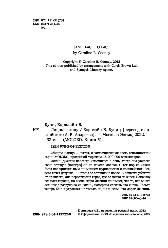Лицом к лицуВ данный момент этот товар отсутствует в продаже. Возможно, у нас найдется аналогичный или похожий товар здесь. Серия: MOLOKO. Кто-то разыскивает тебя по всей стране «Лицом к лицу» — пятая и заключительная часть сенсационной серии MOLOKO, проданной тиражом 15 000 000 экземпляров. |