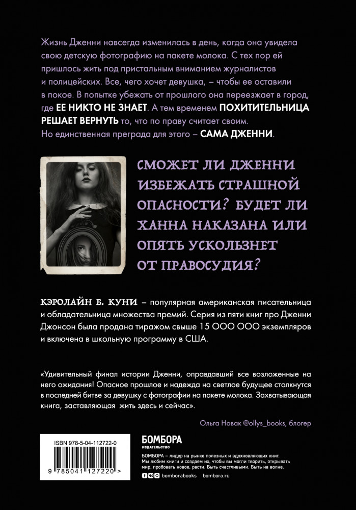 очень интересный сюжет книг. это серия книг но можно прочесть и по отдельности сюжет основан на похищении маленькой девочки и её жизнь после заставляет задуматься о том что происходит с похищенными детьми.
