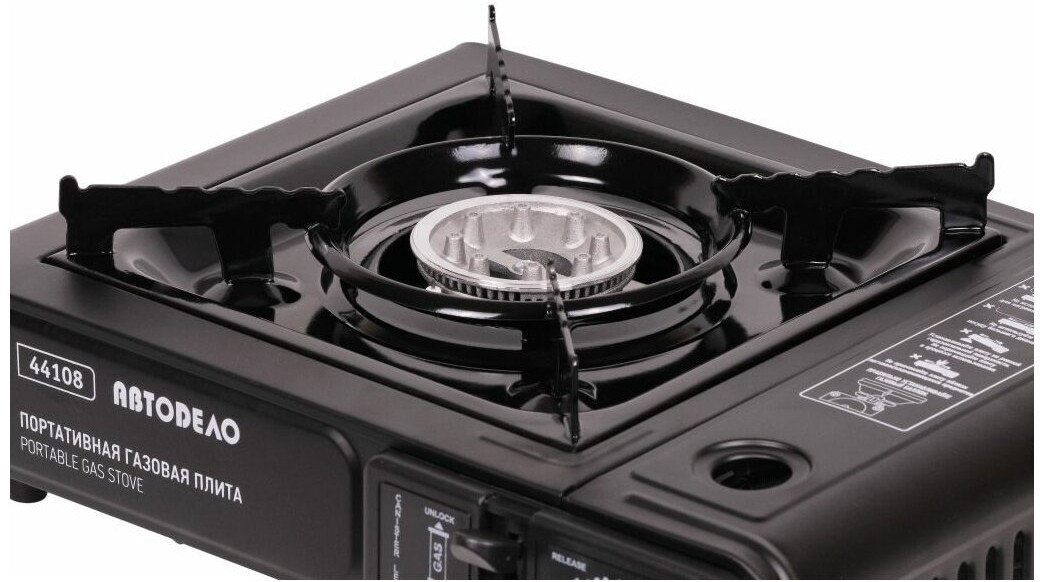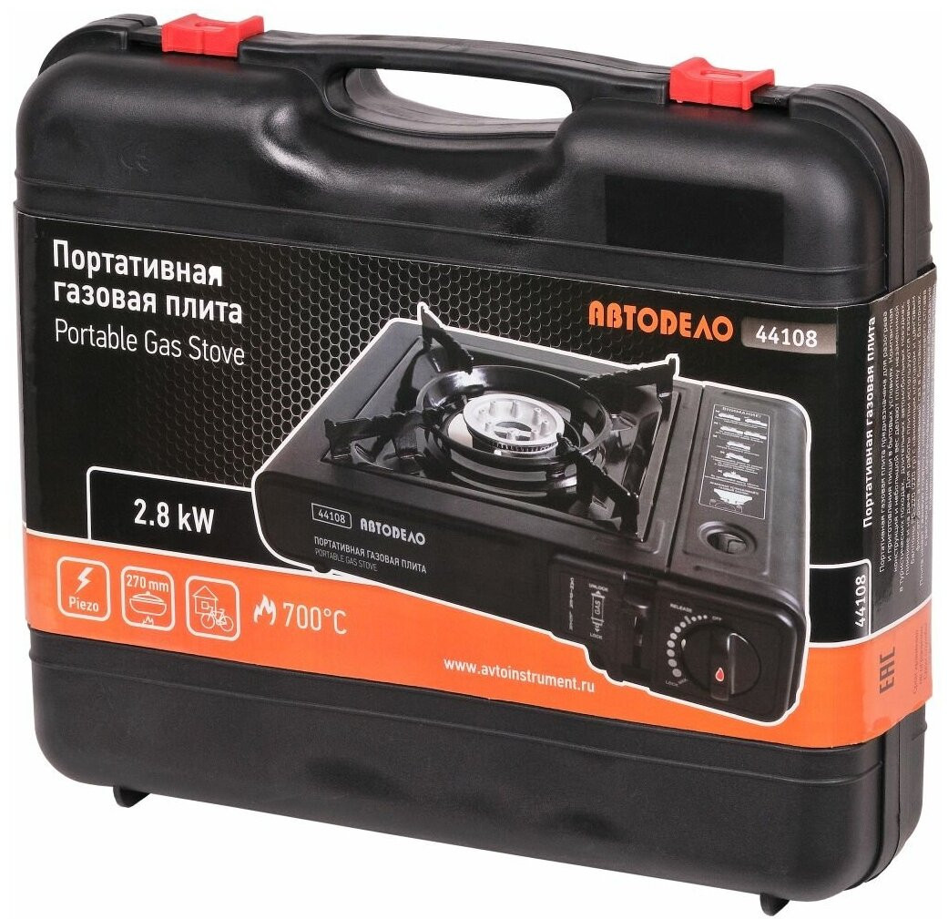 Плитка газовая портативная АвтоДело— незаменимый помощник для водителей, рыбаков, охотников, туристов, дачников. Плита очень легка и удобна в использовании, не занимает много место в багажнике или салоне автомобиля. Работает от одного одноразового цангового газового баллона, который размещается внутри плиты. Рабочая поверхность плиты изготовлена из стали, покрытой огнеупорной эмалью, что увеличивает срок службы изделия. Плита оснащена пьезоэлектрическим поджигом и блоком управления подачей газа. Наличие портативной газовой плиты в автомобиле или на даче значительно упрощает процесс приготовления и разогрев пищи, так же плитка может служить источником тепла в холодное время года. Транспортировка и переноска плиты осуществляется в удобном пластиковом кейсе.