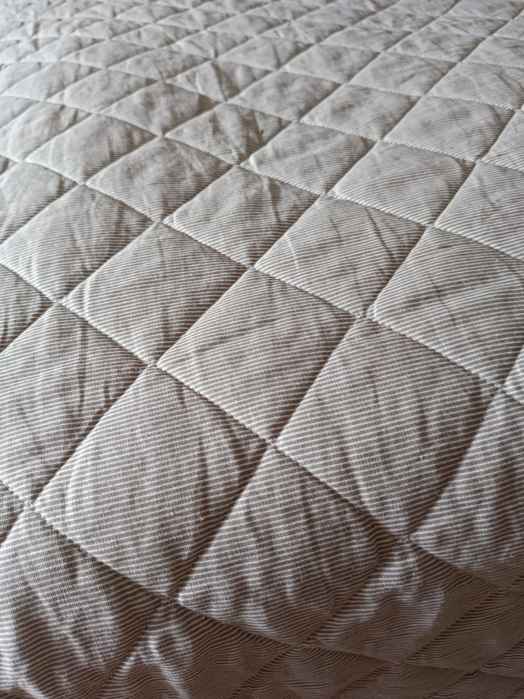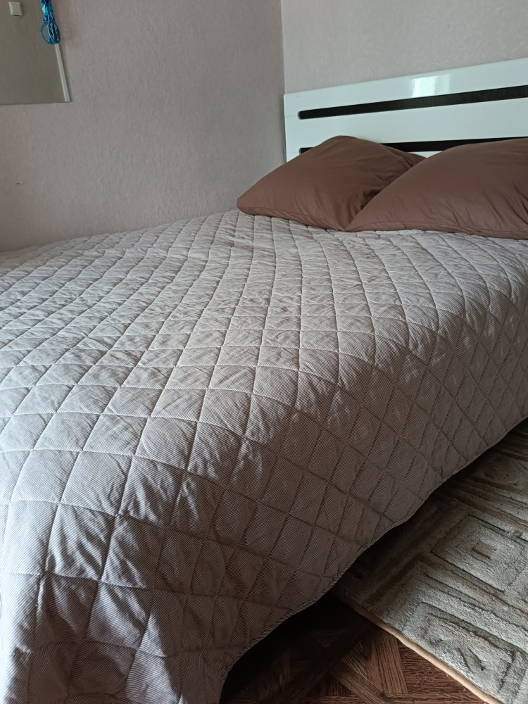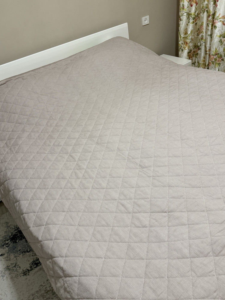 Покрывало очень хорошего качества, хлопок 💯. На кровать 160-200 подошло. Единственный момент который смутил, оказалось в мелкую полоску. Все равно оставила, так как качественное