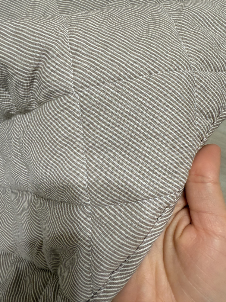 Покрывало порадовало именно качеством хлопка. Без капли синитетики, свежий, прохладный хлопок. Муж забрал и застелил на диван- говорит- лежать приятно, прохладно. Решила заказать и сыну. РЕКОМЕНДУЮ однозначно. Приходит упакованный идеально- можно на подарок. Учтите- цвет не одинарный бежевый, а с тончайшими белыми полосками.