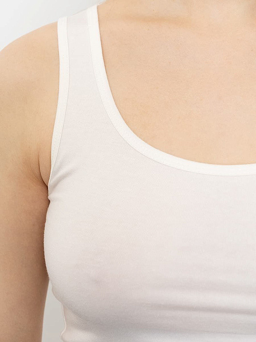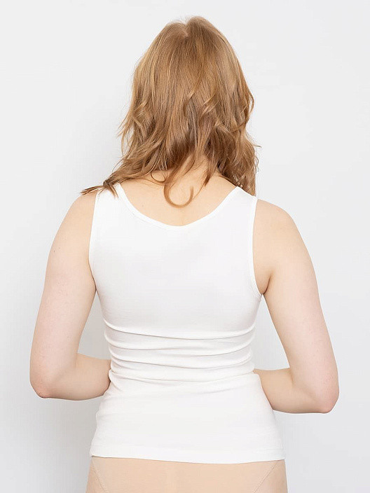 Отличная маечка, очень комфортная, хороший пошив, приятный молочный цвет. Ткань дышащая, практически не просвечивает, но при этом лёгкая, почти не ощутимая. Идеальный вариант для жаркого лета.