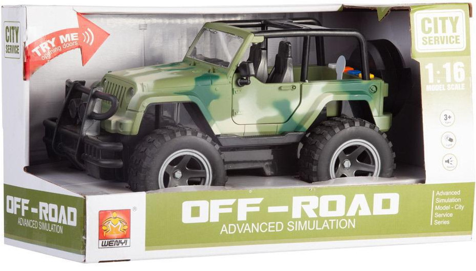 Junfa Toys Машина инерционная «Джип»В данный момент этот товар отсутствует в продаже. Возможно, у нас найдется аналогичный или похожий товар здесь. Вашему мальчику обязательно понравится эта машинка Джип. При нажатии на каждую из 4 кнопок, расположенных в задней части кузова, включаются различные звуковые сигналы (машина заводится, предупреждающий звук (би-би), машина в движении, сработала сигнализация) и фары при этом мигают. Благодаря инерционному механизму машинка способна быстро ездить. |