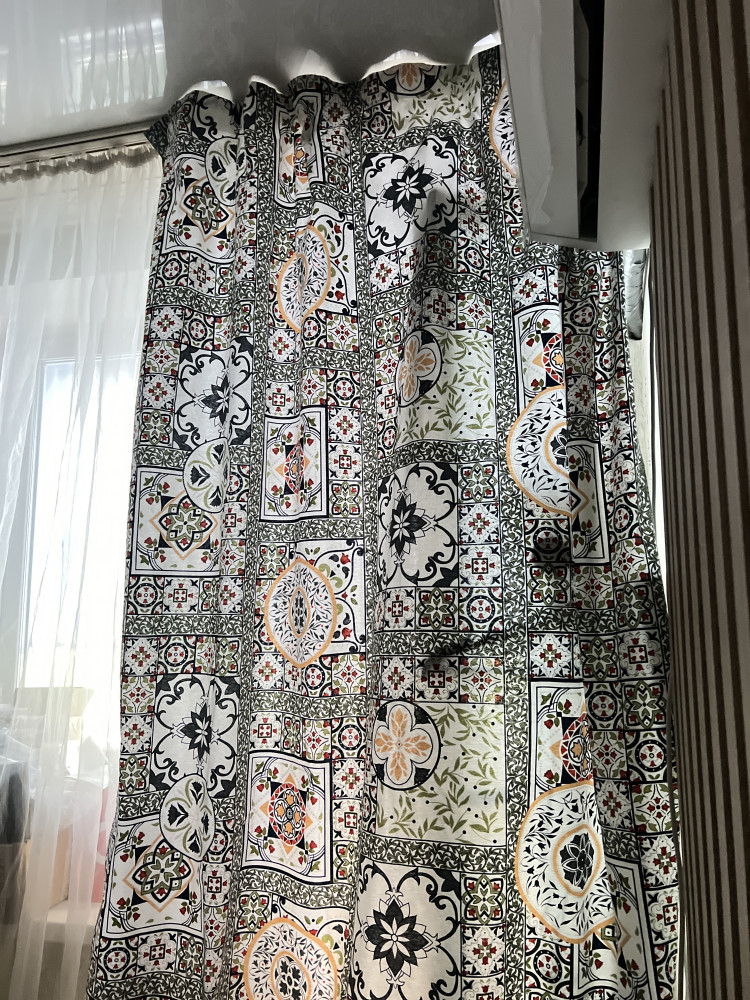 Отличная штора. Ждала когда появятся в наличии чтоб заказать пару и не зря! Плотная рогожка, рисунок как на картинке, высота подошла идеально. Функцию, скрыть отпариватель в балконном проходе, выполнила 👍🏻 на фото видно, что только те части, которые соприкасаются со шторой днем видны в виде тени.
