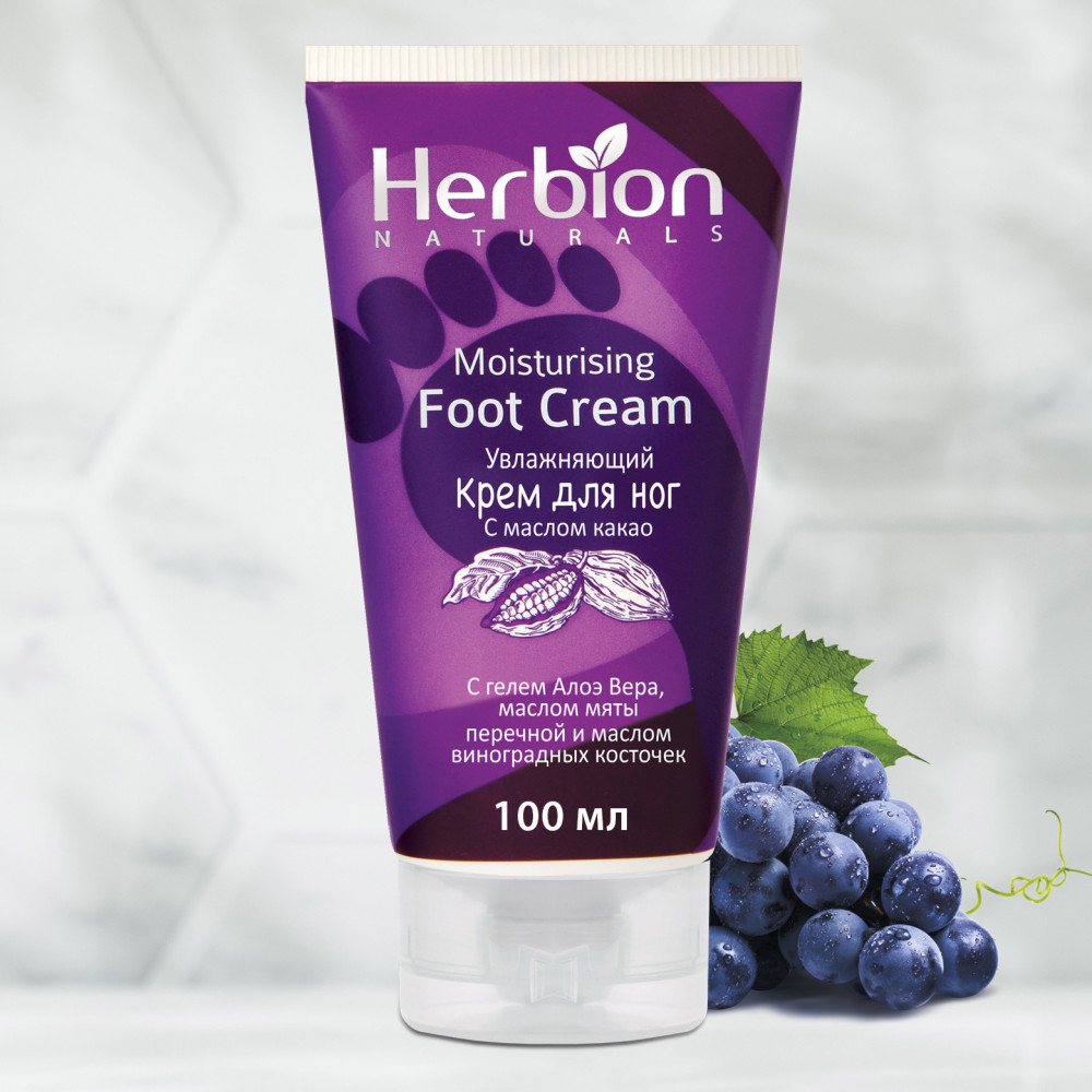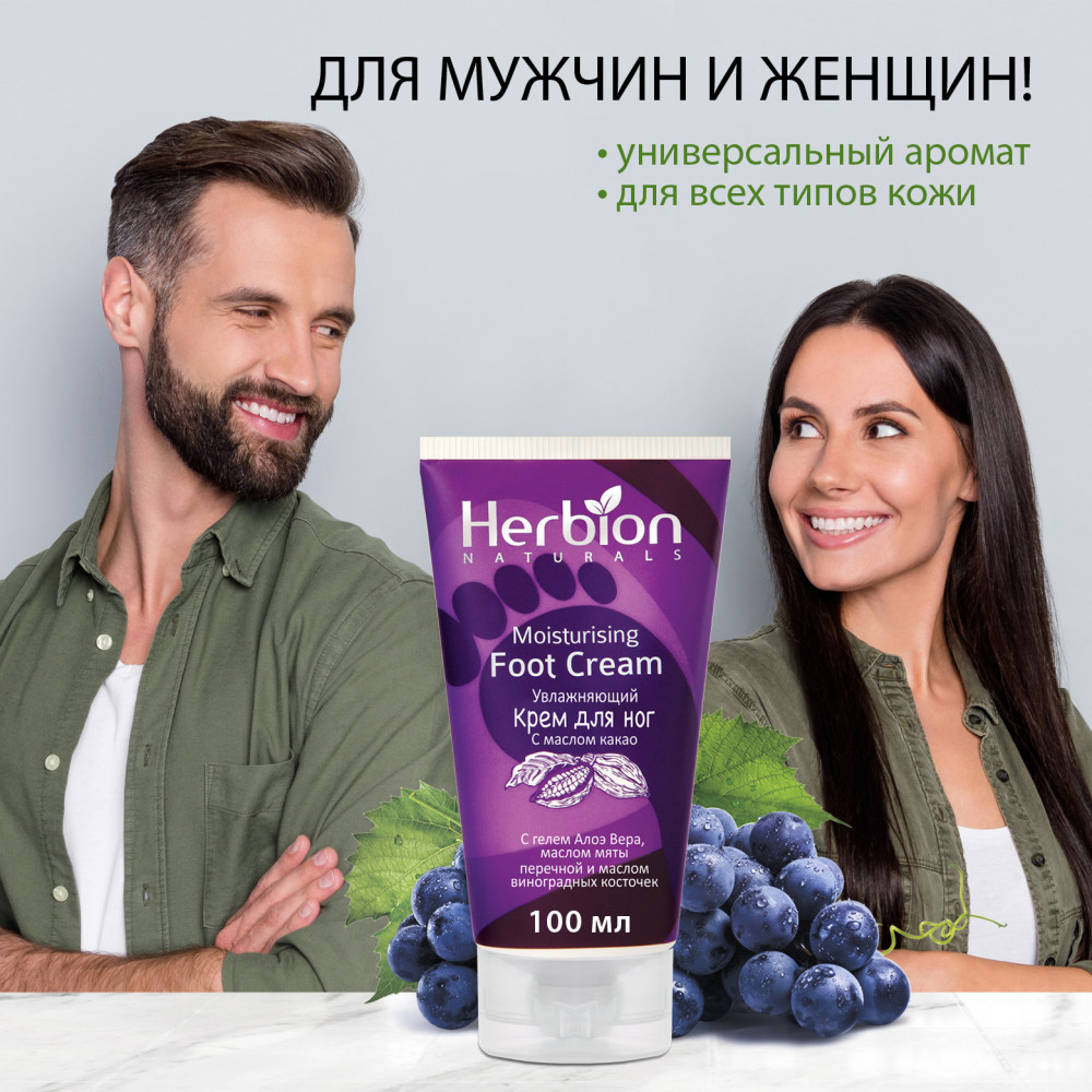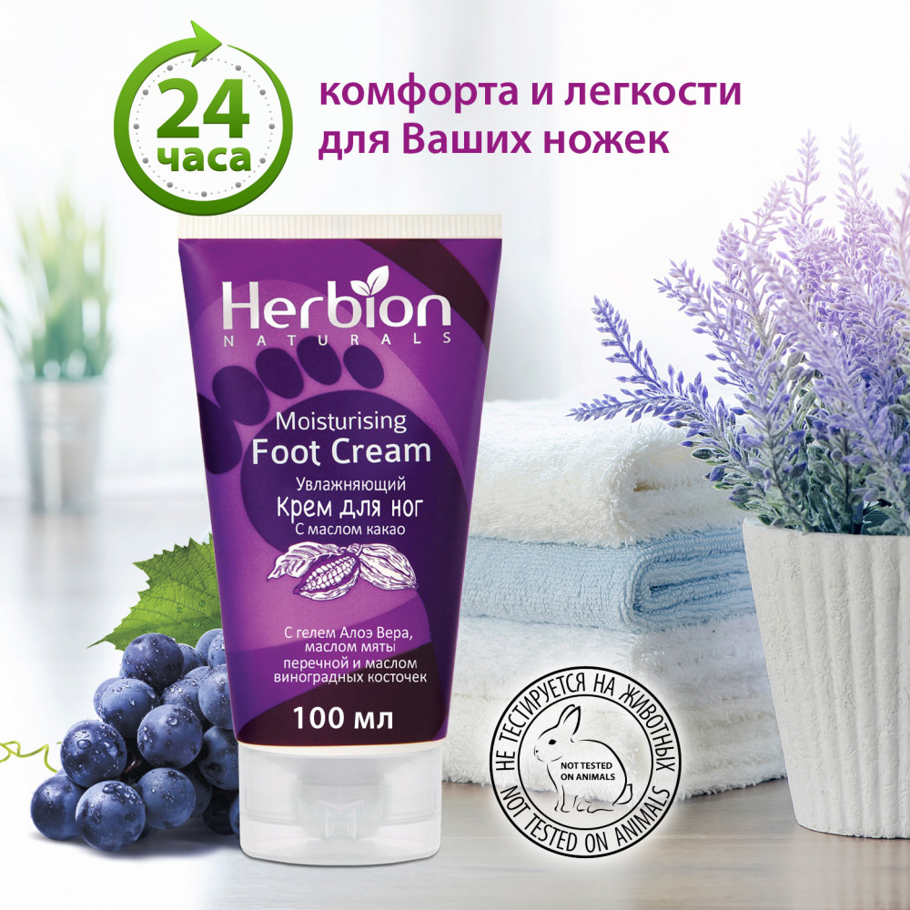 Herbion NATURALS Крем для ног с маслом какао+34 хорошо увлажняет смягчает кожу быстро впитывается приятный запах растительный состав