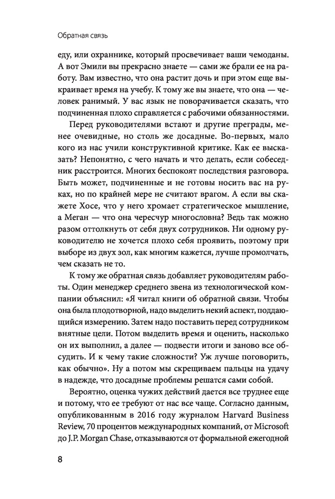 Обратная связь. Как сказать все, что думаешь, и получить все, что хочешьВ данный момент этот товар отсутствует в продаже. Возможно, у нас найдется аналогичный или похожий товар здесь. Серия: Эффективное общение Регулярная обратная связь, если давать ее правильно, может превратить среднестатистических сотрудников в самых усердных, а звезд — в суперзвезд. Но одно резкое слово или неверный тон — и сотрудник потеряет мотивацию навсегда. |