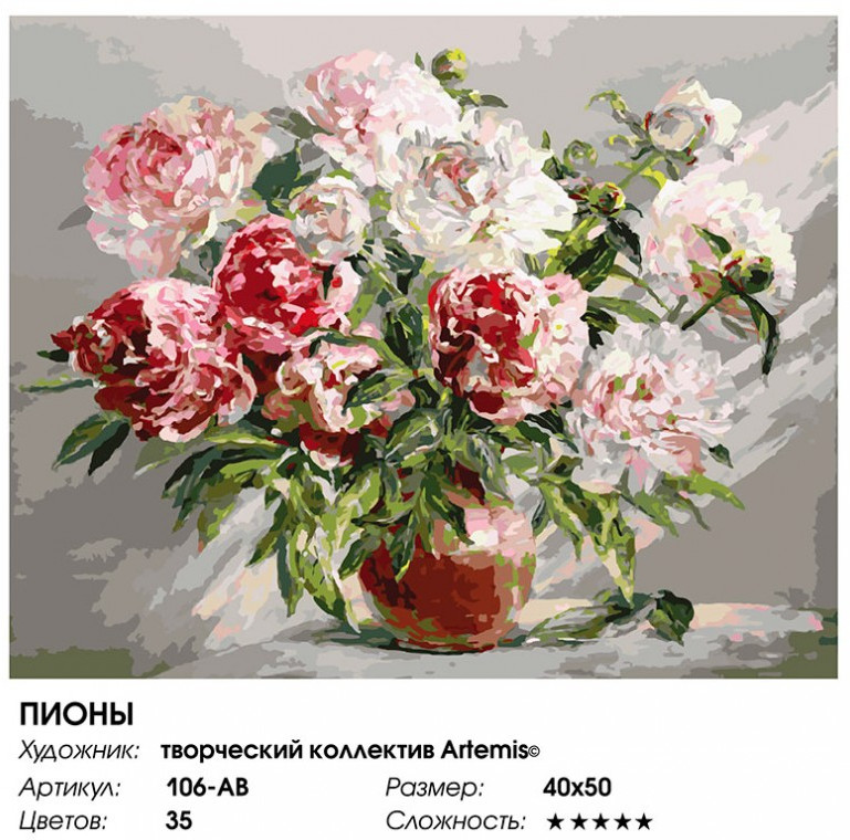 Основа картины — хлопковый холст, натянутый на деревянный подрамник. На холст нанесена схема, разделенная на области для закрашивания. Цифра внутри каждой области указывает на номер краски, которой необходимо закрасить данный участок. В комплект раскраски входят акриловые краски на водной основе, экологически безопасные, без запаха, быстросохнущие. Картина раскрашивается без смешивания красок. Набор комплектуется специальными кистями разного размера с искусственным ворсом для акриловых красок.