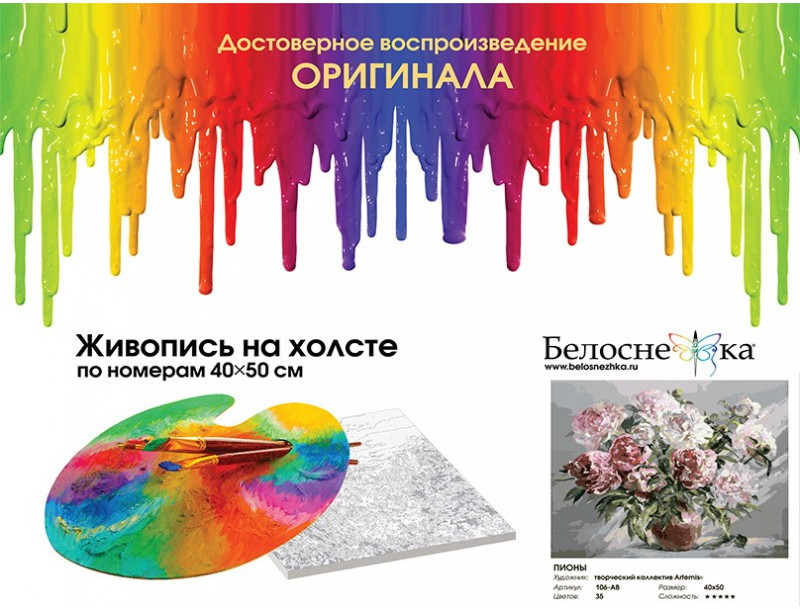 Внимание! Краски могут подсохнуть или быть слишком густыми — это не является браком, в этом случае добавьте небольшое количество воды и хорошо размешайте краску. Рекомендуем раскрашивать картину без длительных перерывов, чтобы краска в баночках не высыхала.