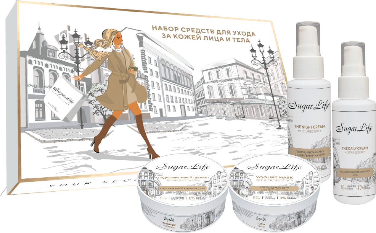 Питающий ночной крем: aqua, glycerin, propylene glycol, grape seed oil, shea butter, almond oil, cornflower extract, green coffee extract, parsley extract, peony extract, lavender extract, emulsion wax, cyclopentasiloxane, ceteryl alcohol, xanthan gum, sodium hyaluronate, potassium sorbate, sodium benzoate, fragrance.
