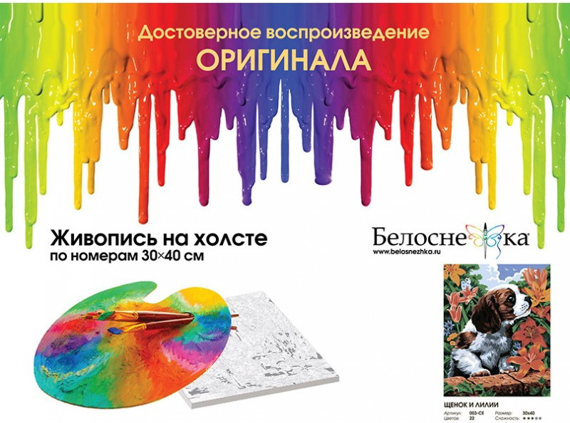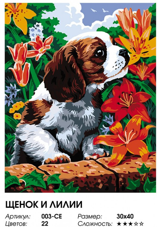Белоснежка Картина по номерам «Щенок и лилии»-25%