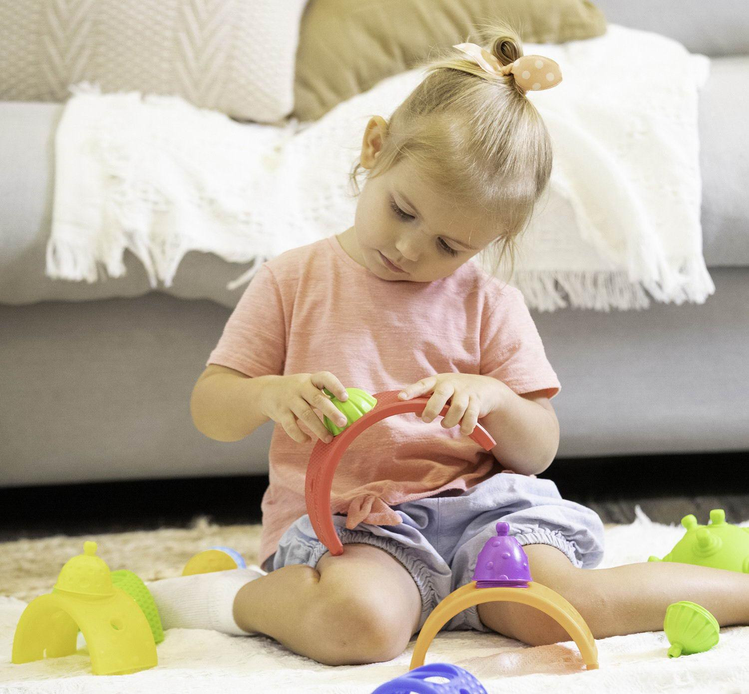 Lalaboom Игрушка развивающая «Радужный конструктор»В данный момент этот товар отсутствует в продаже. Возможно, у нас найдется аналогичный или похожий товар здесь. Разноцветные дуги с различными текстурами — используйте вместе с классическими деталями чтобы ваш малыш смог проявить свои безграничные конструкторские способности! |
