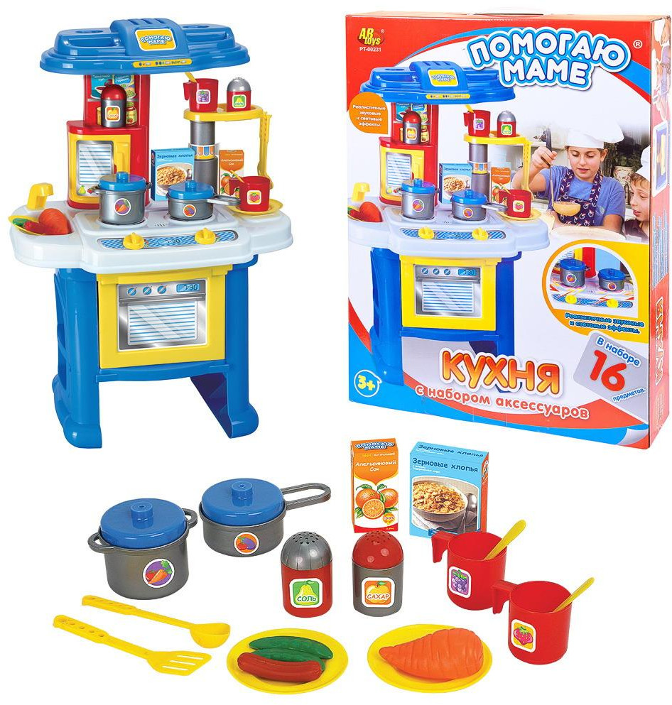 ABtoys Набор игровой «Кухня»В данный момент этот товар отсутствует в продаже. Возможно, у нас найдется аналогичный или похожий товар здесь. Серия: Помогаю маме Благодаря кухне серии «Помогаю Маме» малышка сможет готовить изысканные блюда для праздничного стола своих кукол. В набор входят все необходимые для этого аксессуары! Яркая кухня с оригинальным дизайном оснащена звуковыми и световыми эффектами, которые делают игру реалистичнее и увлекательнее. Звуковые эффекты появляются во время приготовления пищи — кипение воды и жарка. Посуда, вытяжка, полочки, конфорки, газовая печь и даже панель для мытья посуды — все нашло место в этом замечательном наборе. Маленькие кулинары смогут разыгрывать здесь целые кулинарные поединки и постепенно учиться готовить. |