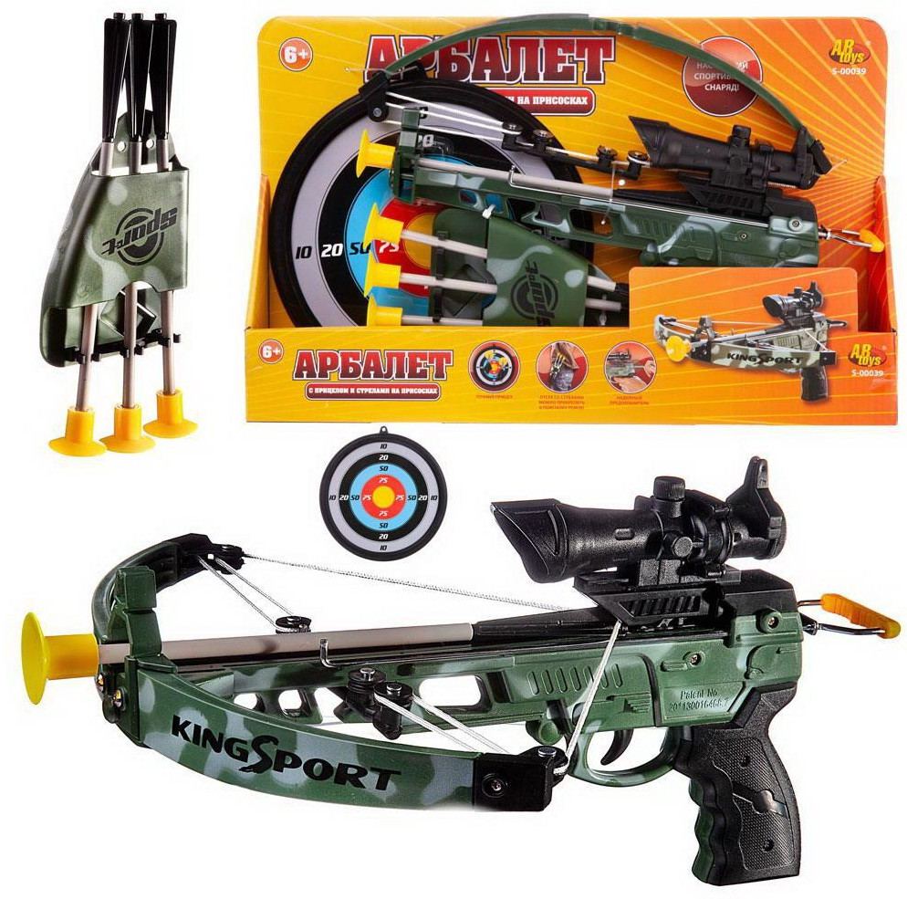 ABtoys Арбалет со стрелами на присоскахВ данный момент этот товар отсутствует в продаже. Возможно, у нас найдется аналогичный или похожий товар здесь. Этот арбалет является настоящим спортивным снарядом. Он стреляет абсолютно безопасными пластмассовыми стрелами с присосками. Сам же арбалет сделан из прочной пластмассы, имеет металлические направляющие, а плечи лука прикручиваются болтами. |