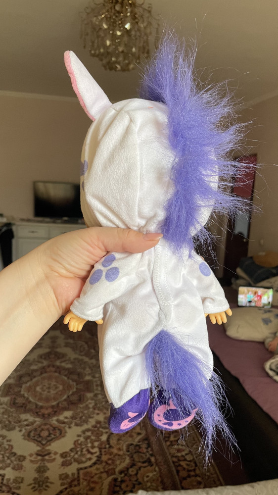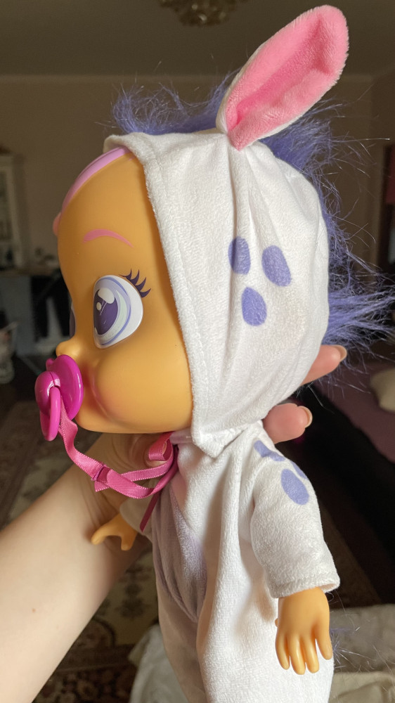 Ее заказали по хорошей скидке, удобно то что кукла кажется из первых партий, так как волосы не настоящие (оно и удобно, ребенок не рвёт ей волосы😄), и в комбинезоне) можно раздеть постирать одежду, можно залить водой отсек, и слезы будут идти когда лялька без пустышки во рту:) после этой покупки мы взяли Дотти, тоже оставила отзыв, там уже волосы, одежда полноценная (не пижама), ооочень добротно смотрится, боялась за волосы, но ничего, длина и сама прическа оказались вполне приемлемы) советую к покупке 100%🫶
