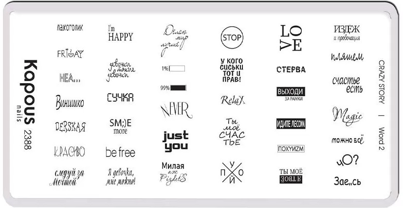 Серия: Crazy story Профессиональные металлические пластины для стемпинга «Crazy Story» — это: |