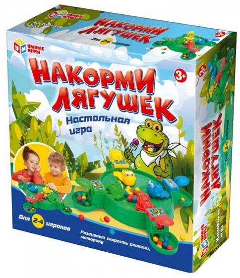 💳 Оплатить за товар можно при получении 🇰🇿 Есть бесплатная доставка по Казахстану 🎁 Копите бонусы с каждой покупки Настольная игра «Накорми лягушек» ТМ «Умные игры» непременно понравится детям. Правила игры очень простые: необходимо высыпать все шарики в центр игровой платформы. Каждый участник выбирает лягушку, которой будет управлять. Все участники начинают игру одновременно: надо нажимать на специальный рычажок, чтобы лягушка вытянула вперед голову, открыла рот и захватила как можно больше шариков. Все шарики, съеденные вашей лягушкой, скатываются в отсек рядом с ней. Игра заканчивается, когда на игровой платформе не останется ни одного шарика. Побеждает тот игрок, кто собрал больше всех шариков. |