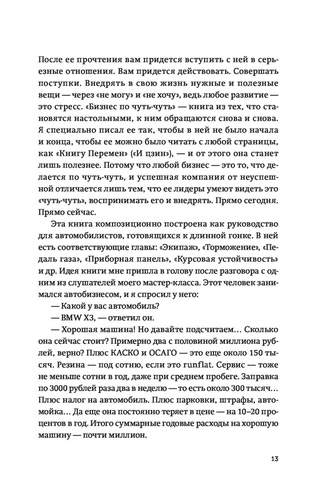 Эту книгу вы будете читать медленно. Скорее всего, по одной-две странице в день. Во всяком случае, я очень надеюсь на это. «Бизнес по чуть-чуть» — это путешествие от частного к общему. В ней очень много конкретики, которая постепенно складывается в одну большую картину.