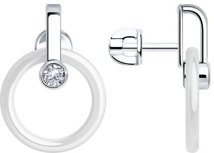 Diamant Серьги из серебра с керамическими вставками и фианитами