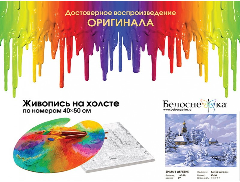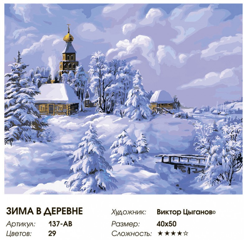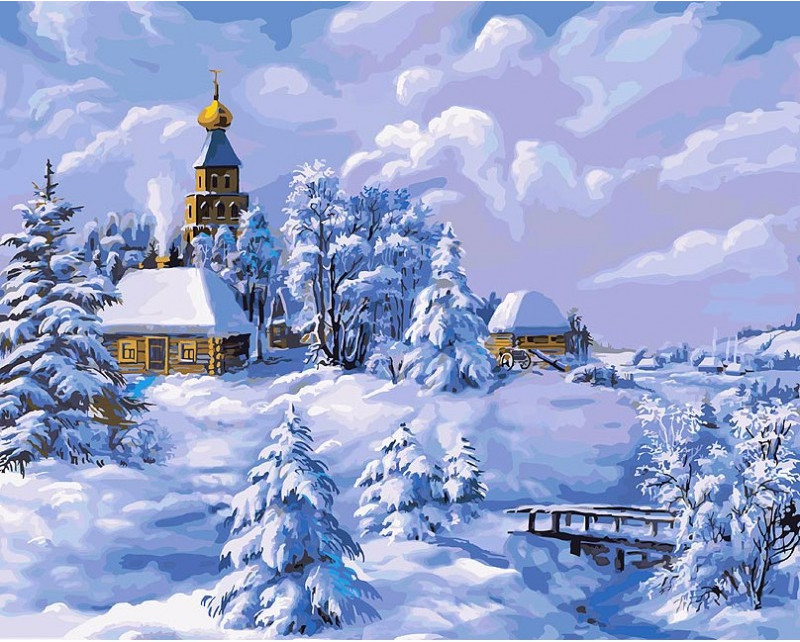 Белоснежка Картина по номерам «Зима в деревне»-25% +273
