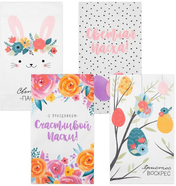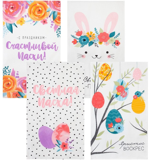 Доляна Набор полотенец кухонных «Пасхальные зайчики»-25% +106 универсальный дизайн приятный вид повседневное использование