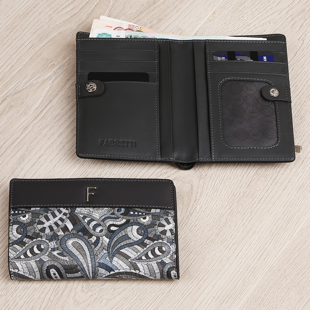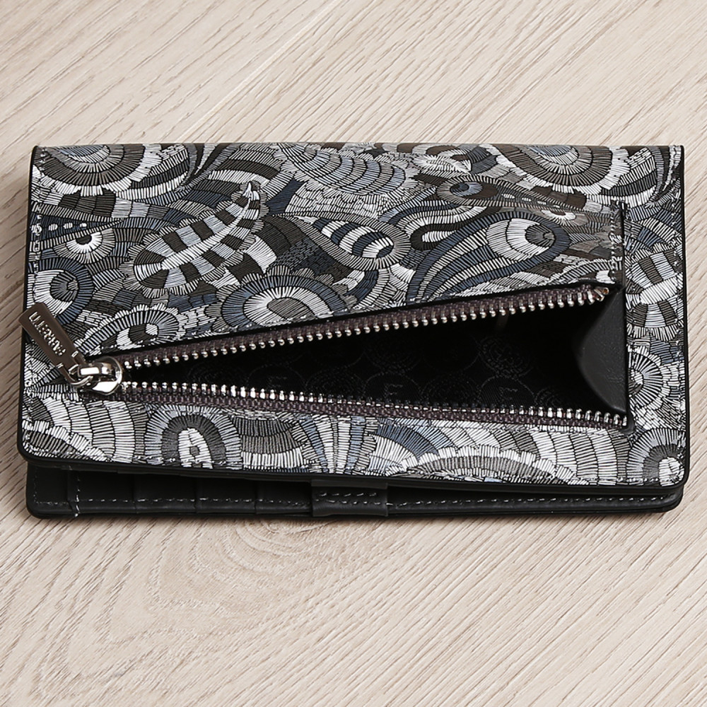 На фото смотриться как будто кошелек комбинированный, кожа и нитками узоры, а нет все коженное и рисунок тоже. Понравился небольшой размер, но когда визитки вкладываешь, то от полноты изнутри кнопка не держит закрывание, поэтому надо визиток минимум. Помещается в сумочки клачи, что радует.Дизайн красивый.