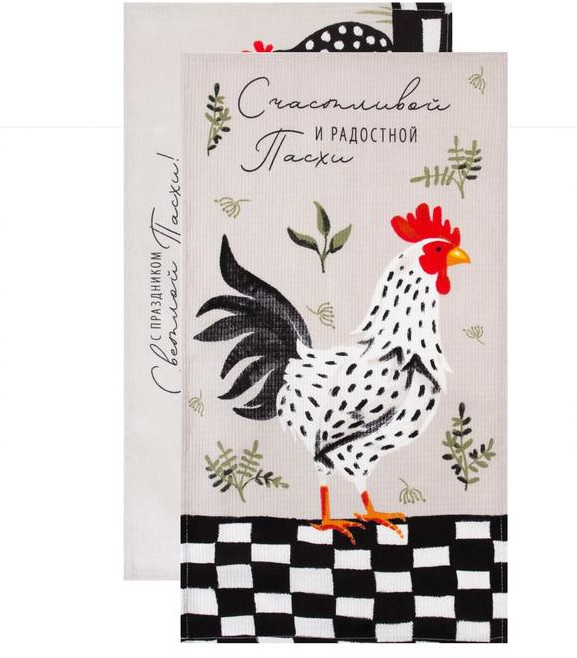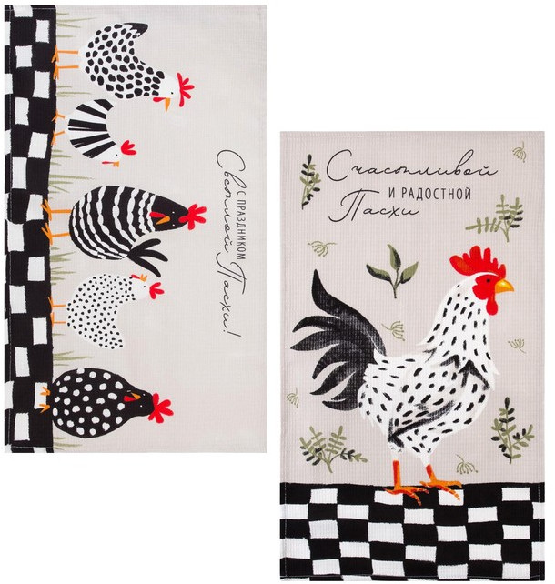Доляна Комплект полотенец кухонных «С праздником Светлой Пасхи»+99 праздничный дизайн весёлый рисунок хороший размер