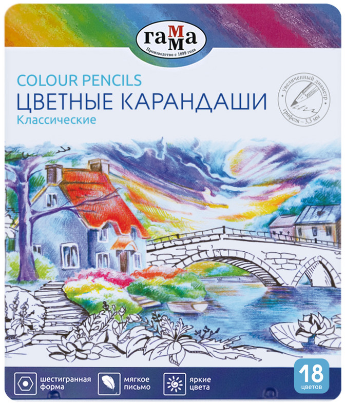 Гамма Набор цветных карандашейВ данный момент этот товар отсутствует в продаже. Возможно, у нас найдется аналогичный или похожий товар здесь. Серия: Классические Цветные карандаши в стильном металлическом пенале отлично подходят в качестве подарка, а также их удобно брать с собой на занятия или на прогулку. Металлическая упаковка надежно сохранит карандаши от повреждений. Увеличенный диаметр грифеля карандашей 3,3 мм способствует легкому скольжению и комфортному рисованию по бумаге любого типа. Натуральная высококачественная древесина специальной обработки гарантирует комфортную заточку без зазубрин и заноз. Проклеенный ударопрочный грифель не крошится во время рисования и не ломается после падения. Карандаши яркие и укрывистые благодаря высококачественным пигментам в составе. |