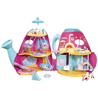 Домик довольно большой, высота 31 см. Множество игровых функциональных зон - качели качаются, с горки можно съезжать через носик лейки, пицца печется, а готовую пиццу можно развозить на мотороллере. Единственно - фигурки животных и, соответственно, аксессуары ну очень крохотные. Поэтому я рекомендую домик для деток постарше - не потому, что могут проглотить, а просто неловкими пальчиками малыши не смогут насладиться в полной мере игрушкой. А так замечательный комплекс