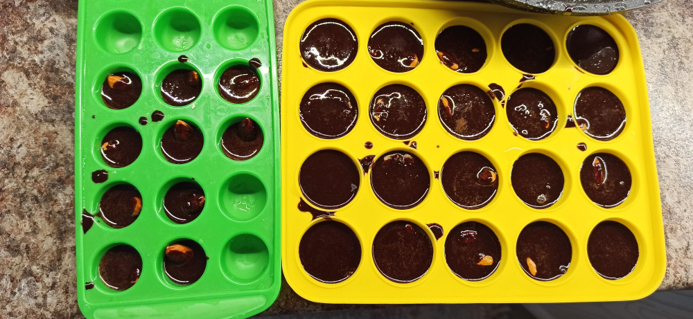 Когда нельзя сахар, но хочется чего то вкусного к чаю, можно приготовить прекрасный шоколад со своими любимыми начинками. По вкусу получился как горький шоколад . Просто смешала порошок с какао маслом и залила орешки