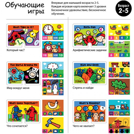 K's Kids Интерактивная консоль K-Magic (Combo)В данный момент этот товар отсутствует в продаже. Возможно, у нас найдется аналогичный или похожий товар здесь. Интерактивная консоль K-Magic - это инновационная развивающая интерактивная игрушка от известного популярного бренда K's Kids, новинка последнего года, быстро завоевавшая популярность детей и родителей в 150 странах мира. |