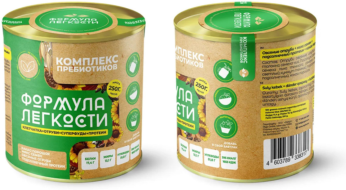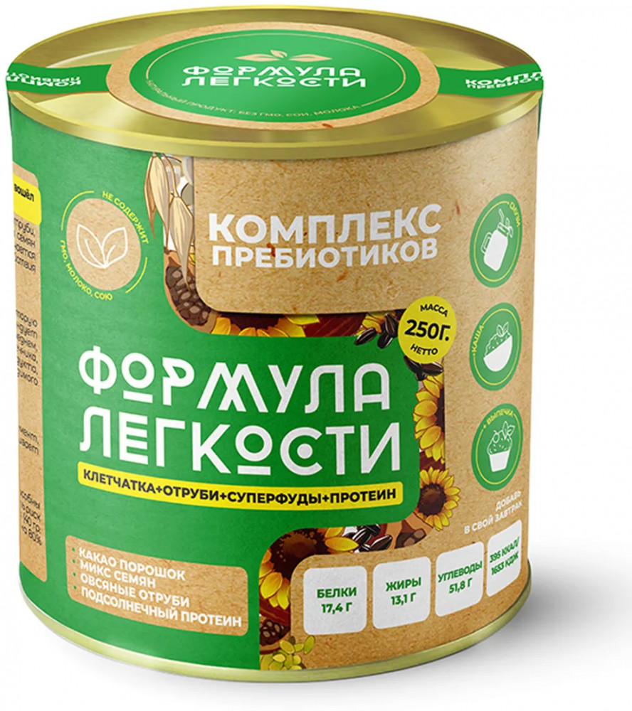 Комплекс ценнейших пребиотиков и натуральных витаминов, входящий в линейку — это незаменимый продукт, в основе которого лежат полезные овсяные отруби, пребиотик инулин и овсяное толокно. Дополненный миксом семян (льна, кунжута, конопли, чиа) и какао порошком, он отличается невероятным вкусом и роскошным спектром полезного воздействия на организм.
