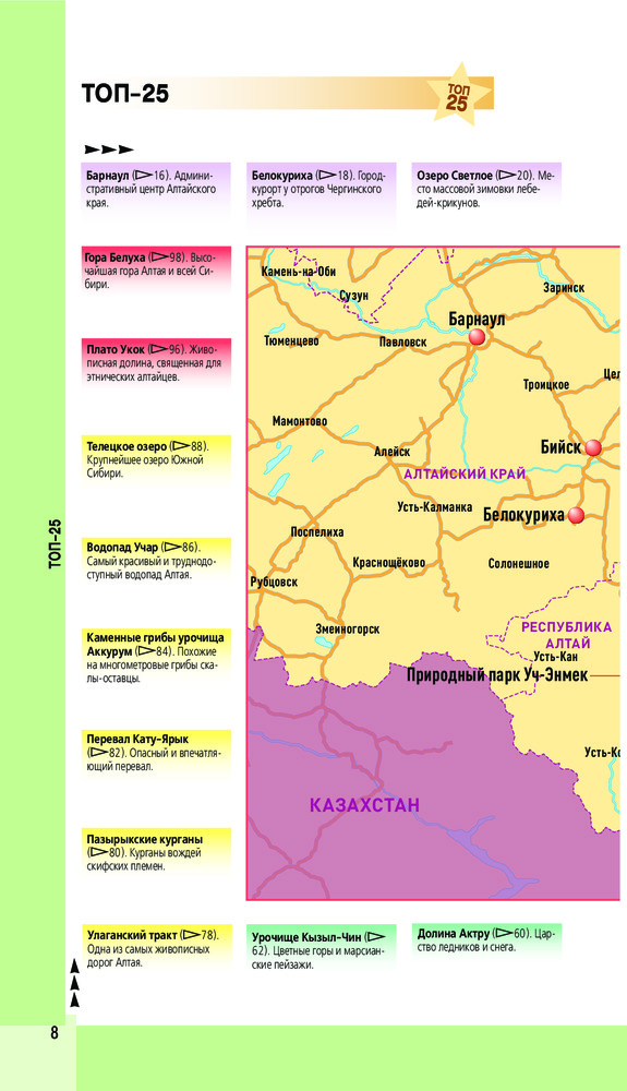 💳 Оплатить за товар можно при получении 🇰🇿 Есть бесплатная доставка по Казахстану от 1 дня 🎁 Копите бонусы с каждой покупки Серия: Красный гид (обложка) Перед вами экспресс-гид по Алтаю. В нем содержится краткая информация о регионе, советы, как лучше провести первый и второй дни, а также топ-25 главных достопримечательностей. В путеводителе вы найдете описания самых интересных и популярных мест. Вся необходимая информация о том, где остановиться и перекусить, куда пойти и как провести время, теперь доступна в режиме нон-стоп с "Красным гидом". |