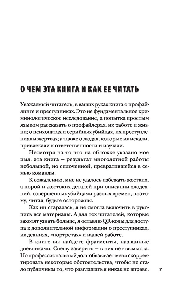 "Портрет психопата. Профайлер о серийных убийцах" !А.В. Кулик) в отличном красивом переплёте. Страницы белые, шрифт хороший для чтения. Как психолог -криминалист со стажем, восхищена содержанием книги. Тем более, что с некоторыми из специалистов упомянутых в книге, я лично знакома. Содержание книги хорошо структурировано, чёткость изложения текста и профессиональная грамотность просто поражают. Сделан анализ работы как профайлера, приведены примеры отечественных серийных преступников и маньяков (также с анализом). В то же время, отмечу - ничего лишнего, о чём всем подряд рассказывать не нужно. Книга великолепная, высоко профессиональная. Как специалист, я восхищена, других слов не нахожу. СУПЕР!!