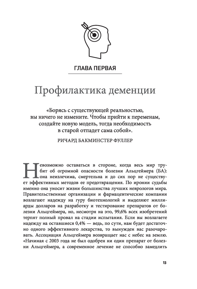 Исключив их, даже имея генетическую предрасположенность к болезни, можно никогда не получить снижения когнитивных навыков. Книга доктора Бредесена — пошаговое руководство к тому, как сохранить свой мозг до глубокой старости невредимым. |