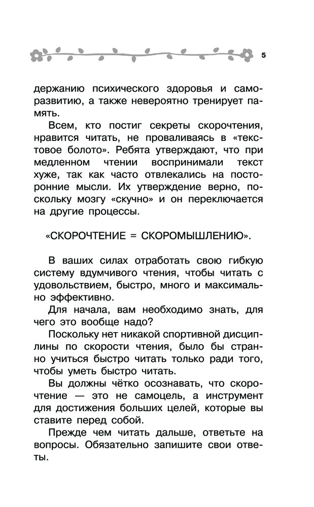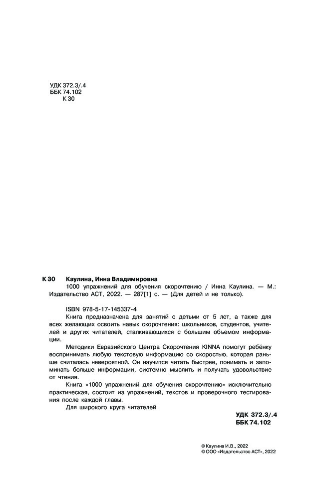 💳 Оплатить за товар можно при получении 🇰🇿 Есть бесплатная доставка по Казахстану от 1 дня 🎁 Копите бонусы с каждой покупки Серия: Для детей и не только Как не захлебнуться в океане информации. Ловите спасательный круг от Инны Каулиной — известного тренера и руководителя «Евразийского ЦентраCкорочтения KINNA». Она щедро делится методикой вдумчивого быстрого чтения, отшлифованной за 30 лет практической работы с детьми и взрослыми. За это время она обучила около 100 тысяч слушателей и получила удивительные результаты! Дети 6-14 лет читают со скоростью ДО 132 000 — 186 000 знаков в минуту с полным пониманием текста, могут кратко сформулировать его суть и вспомнить детали! |