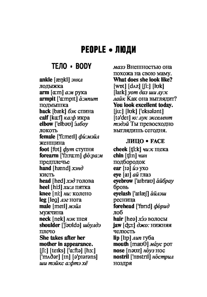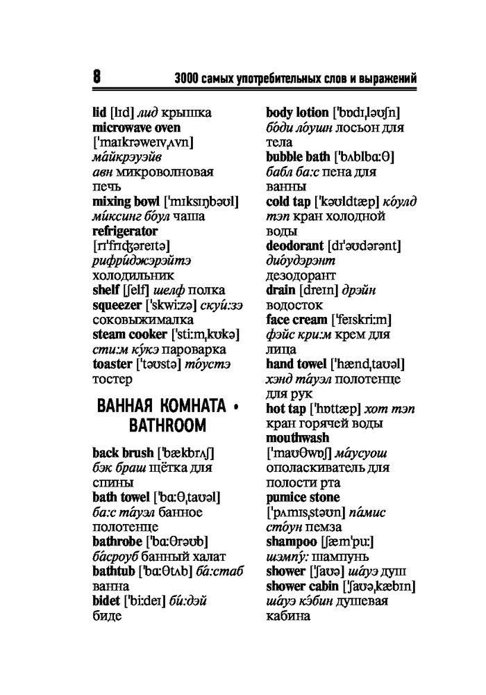 3000 самых употребительных слов и выражений английского языкакомпактный формат понятный материал для начинающих разговорная лексика В данный момент этот товар отсутствует в продаже. Возможно, у нас найдется аналогичный или похожий товар здесь. Серия: Английский просто В данном пособии вы найдете наиболее распространенные слова и выражения по следующим темам: дом, люди, здоровье, работа, обучение, покупки, транспорт, досуг, спорт и окружающая среда. Для всех слов и выражений дана транскрипция. Справочник будет полезен для школьников, студентов, преподавателей и всех тех, кто учит английский язык. |