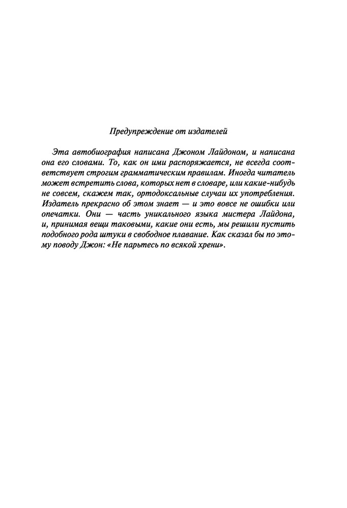 Sex Pistols. Гнев — это энергия. Моя жизнь без купюрВ данный момент этот товар отсутствует в продаже. Возможно, у нас найдется аналогичный или похожий товар здесь. Серия: Music Legends & Idols Жизнь фронтмена Sex Pistols Джона Лайдона никогда не была похожа на красочные фильмы о рок‑звёздах. Мальчик вырос в трущобах Лондона среди насилия и бедности, а музыкантом стал, скорее, в знак протеста, нежели ради денег и славы. И он не боится об этом открыто говорить. Пронзительная и откровенная история о суровой жизни Лайдона в Англии, о жизни в Sex Pistols и за её пределами. |