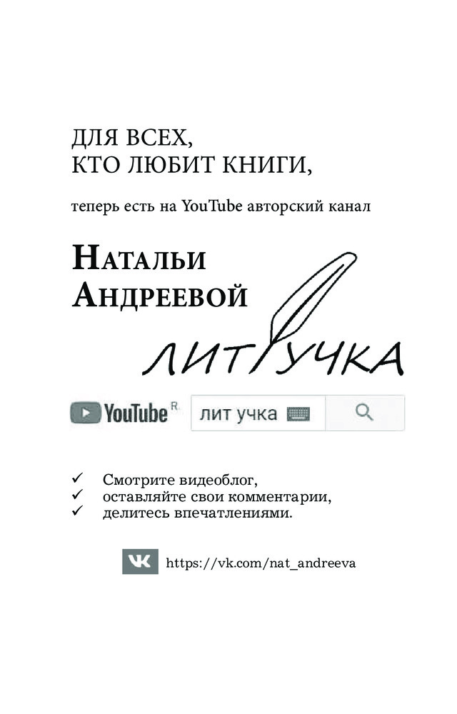 | Наталья Вячеславовна Андреева - российская писательница, автор романов детективного жанра. Родилась в деревне Порохово Волоколамского района Московской области. Окончила Волоколамскую среднюю школу, после чего поступила в Московский Институт Культуры на факультет библиотековедения и библиографии. Получив диплом, уехала в город Балашов Саратовской области, на родину мужа, где проработала пять лет в массовой библиотеке в должности библиографа. Позже перебралась вместе с мужем и сыном в... |