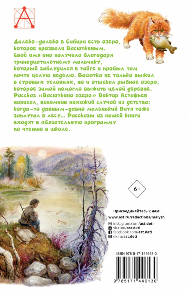 💳 Оплатить за товар можно при получении 🇰🇿 Есть бесплатная доставка по Казахстану от 1 дня 🎁 Копите бонусы с каждой покупки Серия: Детское чтение В книгу вошли четыре рассказа Виктора Астафьева — «Васюткино озеро», «Конь с розовой гривой», «Зорькина песня» и «Гуси в полынье». Они повествуют о суровой природе Сибири, могучей реке Енисей и особенных людях, живущих там, — мужественных, умных, сильных и честных. Так, например, тринадцатилетний Васютка не только смог выжить в тайге, но и обнаружил новое озеро, которое спасло жизнь его родной деревне. |