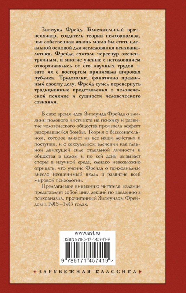 💳 Оплатить за товар можно при получении 🇰🇿 Есть бесплатная доставка по Казахстану от 1 дня 🎁 Копите бонусы с каждой покупки Серия: Зарубежная классика В свое время идея Зигмунда Фрейда о влиянии полового инстинкта на психику и развитие человеческого общества произвела эффект разорвавшейся бомбы. Теория о бессознательном, которое влияет на все наши действия и поступки, и о сексуальном влечении как главной движущей силе отдельной личности и общества в целом и по сей день вызывает споры в научной среде, однако невозможно отрицать, что учение Фрейда о психоанализе внесло неоценимый вклад в развитие всей мировой психологии. |