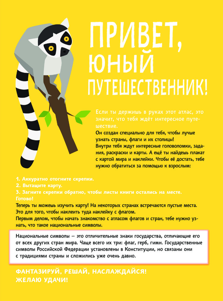 💳 Оплатить за товар можно при получении 🇰🇿 Есть бесплатная доставка по Казахстану от 1 дня 🎁 Копите бонусы с каждой покупки Серия: Первый атлас для любознательных (с картой и наклейками) Атлас для детей про флаги и страны отправит вашего ребенка в увлекательное путешествие по миру прямо из его комнаты. Красочные развороты наполнены заданиями на географические темы: знакомство со столицами, странами и их флагами, в издании присутствуют задания на логику, внимание и запоминание, мотивирующие к обучению, а также интересные раскраски. Внутри вкладыш большой карты мира плакатного формата 410×530 мм и наклейки флагов, которые надо поместить на карте. |